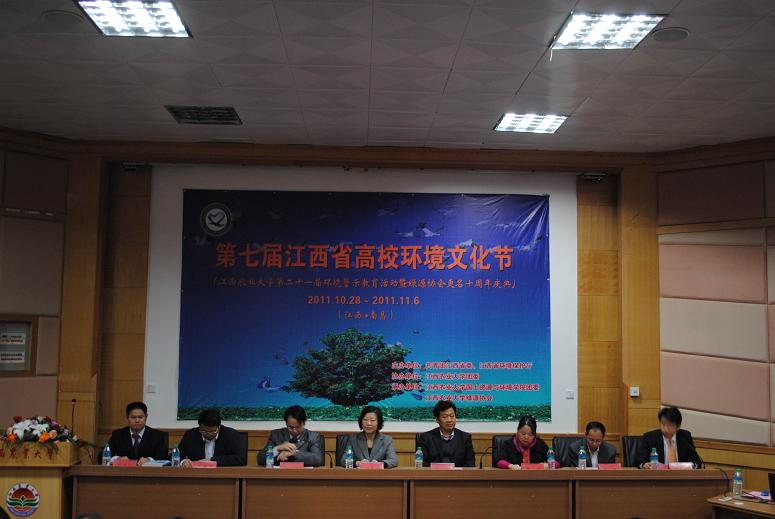 10月29日上午,江西农业大学校园彩旗飘扬,由团省委、省环保厅主办,江西农业大学协办,江西农业大学国土学院、江西农业大学绿源协会承办的“第七届江西省高校环境文化节”开幕式在江西农业大学隆重举行,江西省内外共计40所高校环保社团的指导老师和协会负责人云集江西农业大学,共有200多名环保青年志愿者代表参加了本次开幕式。共青团江西省委农青部部长曾小兵、江西省环保厅宣传教育中心主任李旭亮、福建生态学会理事长厦门大学教授李振基、江西农业大学校长助理组织部部长胡春晓、党委宣传部部长黎瑛、学工部部长左辉群、国土院党委书记郭旭、国土学院党委副书记蔡海生教授等校领导应邀出席。开幕式由江西农业大学学工部副部长、校团委副书记胡志坚老师主持。