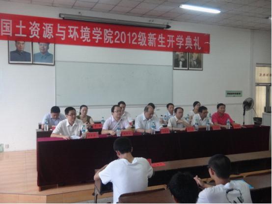 在庄严的国歌中,开学典礼正式开始。李保同院长首先代表学院对新生的到来表示欢迎,为新生详细介绍了学院的历史、专业设置及专业前景,并对新生提出了殷切希望,希望同学们继承和发扬传统美德,做一个有高尚品行的人;希望同学们努力学习科学文化知识,做一个刻苦勤奋的人;希望同学们尽快实现由中学生到大学生的角色转变,做一个善于学习的人;希望同学们积极参加各种社会实践活动,做一个综合素质高的人。最后,院长结合新生的专业特点,从资源利用和环境保护角度,要求同学们正视自然资源与环境的价值,热爱自然环境,遵循人与自然环境的依赖关系,始终做人与自然环境和谐共生的践行者。郭旭书记在讲话中,以爱国、感恩、成才为主题,勉励同学们能尽快适应大学生活,成为一名高素质高水平的大学生。院教师代表张嶔、老生代表房董祥在发言中悉心引导同学们,告诫大家珍惜锻炼的机会,以坚强自信的态度面对生活和学习。新生代表谢雨同学呼吁同学们以快乐的生活态度、积极的学习态度面对未来的大学生涯。