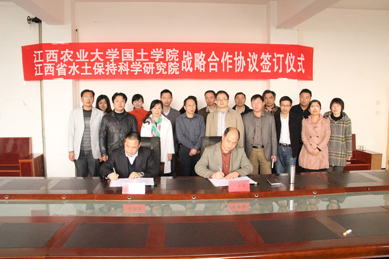 (本报讯)3月22日下午,江西农业大学国土资源与环境学院与江西水土保持科学研究院合作签约仪式在国土学院会议室举行。水土保持科学研究院长方少文、总工杨洁等一行七人与国土学院院长李保同、党委书记郭旭、副院长陈文波、党委副书记黄新志和资环教研室相关科任老师出席签约仪式。双方代表签署了江西水土保持科学研究院和江西农业大学教学实习基地协议。